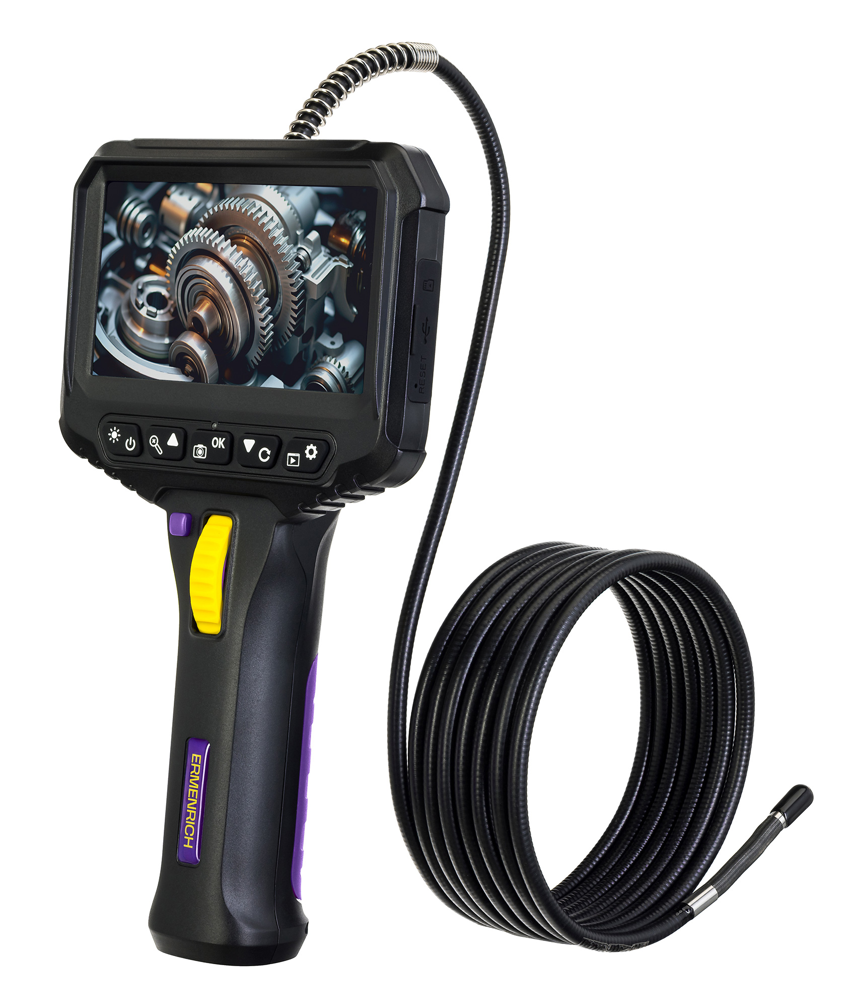 Przyrządy diagnostyczne Ermenrich mają szereg istotnych zalet. Niektóre z nich są wyposażone w lusterko boczne, haczyk i inne akcesoria, które umożliwiają inspekcje w różnych warunkach. Wbudowany rejestrator pozwala na zapis wysokiej jakości zdjęć i filmów na karcie pamięci w celu dalszej analizy. Wodoodporna konstrukcja kamer i oświetlaczy zgodna ze standardem IP67 gwarantuje niezawodne działanie nawet w kontakcie z wodą.