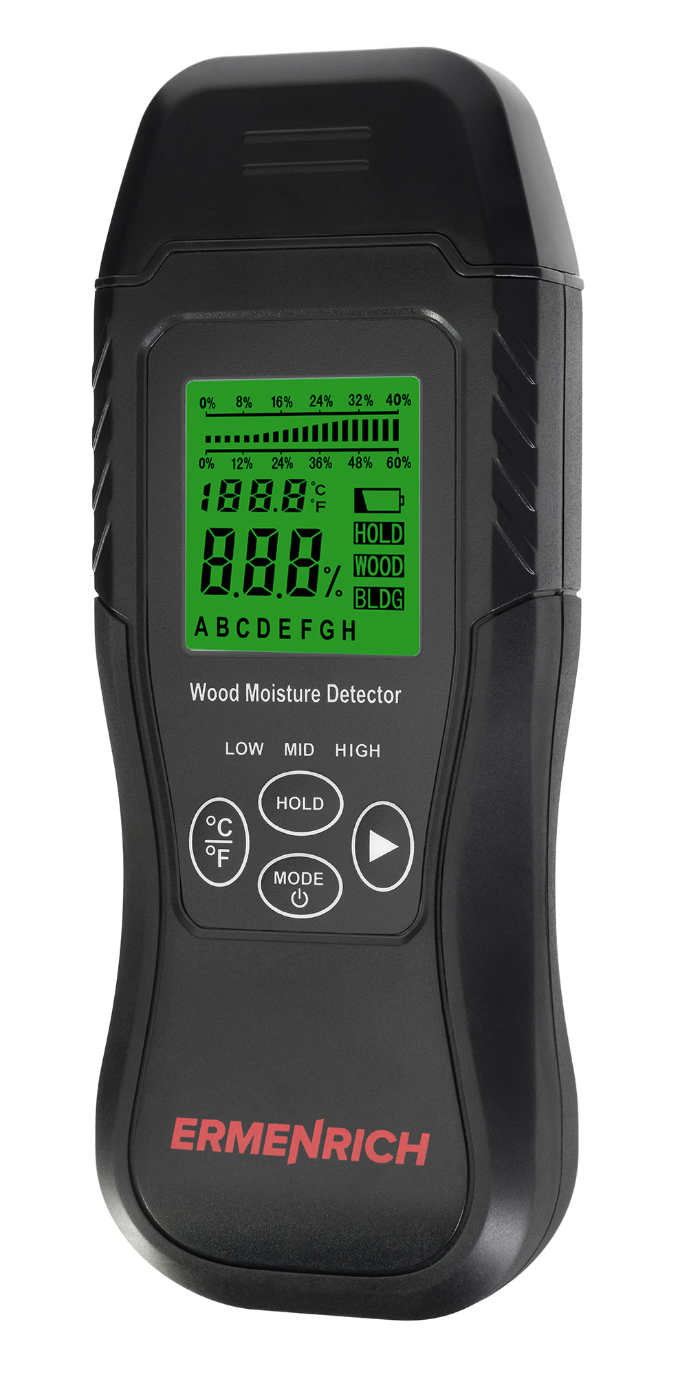 Przenośny wilgotnościomierz Ermenrich Wett MW30 umożliwia szybkie dokonanie pomiaru poziomu wilgotności materiałów budowlanych i produktów z drewna. Ma to szczególne znaczenie w przypadku zaopatrzenia w materiały, produkcji, stolarstwa i domowych prac konserwacyjnych. Urządzenie mona wykorzystywać w pracy z takimi materiałami, jak tektura, drewno, beton, gips itp. Wilgotnościomierz ma również wbudowany termometr, który może mierzyć temperaturę w dwóch jednostkach miary: stopniach Celsjusza i Fahrenheita.